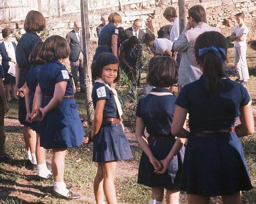 As Bandeirantes - versão feminina dos escoteiros - teve uma atuação muito grande em Jacarezinho, comandada que era pela Sra. Dulce Costa, que liderava uma um grupo enorme de meninas da cidade. E tão grande era sua atividade que ganhou um terreno para construir sua sede, no local onde hoje se encontra a ACIJA. Infelizmente porém uma série de problemas impossibilitaram a edificação do prédio. A cena acima é da colocação da pedra fundamental, o que ocorreu por volta dos anos 60.