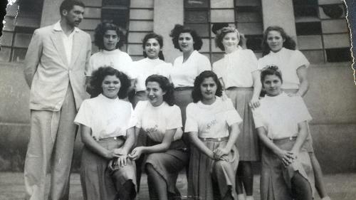 Esta foto deve ser do final dos anos 40 ou início da década de 50 e mostra as atletas do Colégio Imaculada Conceição, jogadoras de basquete e de volei e que têm ao seu lado o treinador Reynaldo Serra. Serrá foi jogador da Esportiva e ainda professor de Educação Física do Cristo Rei e do Imaculada. Mais tarde foi Tabelião na cidade. Dentre as atletas, Divete (a 2ª da esquerda para a direita, sentada). Em pé, a segunda Hilda Abu-jamra e a última Olga Gomes da Cunha.