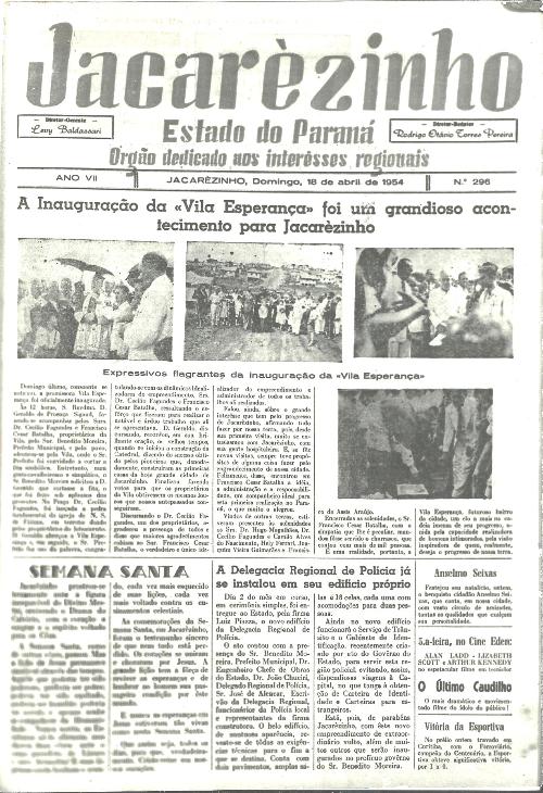 Nos anos 50, quando Jacarezinho vivia a explosão de seu crescimento, em todas as áreas (esportiva, política, econômica e social) foi lançado um, na época arrojado, empreendimento. Um novo bairro situado à direita de quem saía de Jacarezinho com destino a Cambará, a Vila Esperança. Quem liderava o empreendimento era Francisco César Batalha, representante do mineiro Dr. Cecílio Fagundes (distribuidor da Loteria do Estado para todo o norte do Paraná). A solenidade contou com a presença do Bispo D. Geraldo, do Prefeito Benedito Moreira e da população da cidade que depois se fartou com um grande churrasco. Embora abertas as ruas o novo bairro não prosperou. Batalha, requisitado por todos para patrocinar toda e qualquer acontecimento que ele patrocinava de bom gosto, candidatou-se a deputado estadual não sendo eleito. Daí em diante com dificuldades financeiras, perdendo a concessão da loteria a Vila Esperança foi sofrendo as consequências de uma grave erosão e acabou frustrando com o sonho de muitos. Sua inauguração foi registrada nas páginas do jornal da época, edição de 18 de abril de 1954.