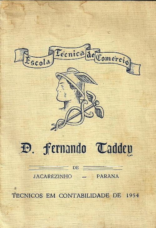 Na época em que o hoje chamado ensino médio era da maior importância, a conclusão do curso de "técnico em contabilidade" era um acontecimento na cidade. Para isto a Escola técnica de Comércio D. Fernando Taddey em muito contribuiu. O que se vê nesta página é a capa do convite dos formandos de 1954.