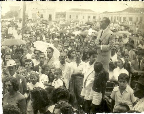 Uma boa parte da população local cocentra-se por volta do final da década de 30, defronte à Igreja da Imaculada Conceição na praça que então tinha o mesmo nome (hoje, Praça Rui Barbosa). Impossível dizer a razão pela qual aquela pessoa se encontra em um nível superior aos demais. Alguns costumes da época estão bem presentes nesta fato: principalmente as mulheres, protegem-se do sol com as chamadas "sombrinhas" enquanto que os homens de um modo geral trajam-se com ternos e alguns até usando gravata. E no cidadão que se encontra em destaque uma tarja preta mostra o sinal de luto, tão comum naqueles tempos quando se perdia algum familiar.