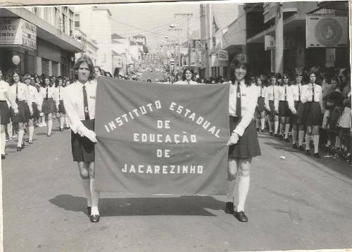 Mas aqui está uma imagem do Instituto de Educação de Jacarezinho desfilando pelas ruas da cidade provavelmente em 1972.