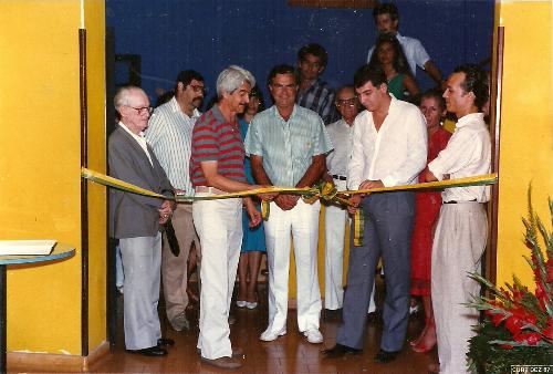No corte da fita inaugural Geraldo Silva (um dos fundadores do CAT) ao lado de Paulo Ferrari, então Presidente da entidade, tendo ao centro o Prefeito Emmanuel Gonçalves Vieira.