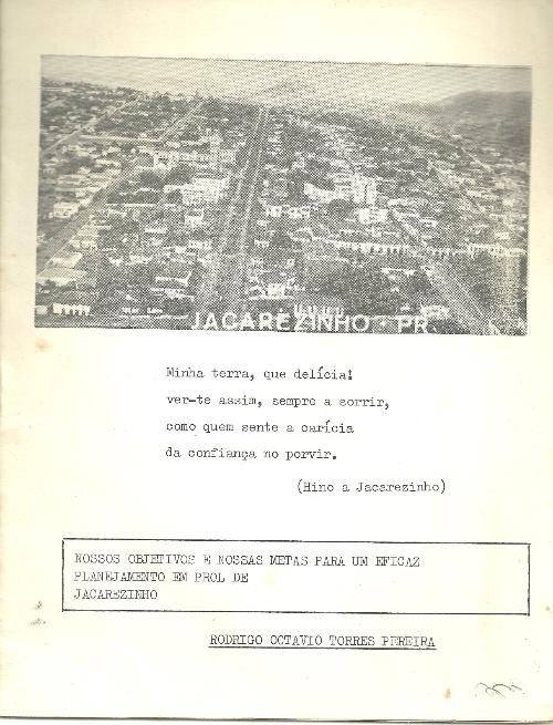 Uma das grandes personalidades de Jacarezinho o Prof. Rodrigo Octávio Torres Pereira acabou por aceitar a indicação de seu nome como candidato a prefeito nas eleições de 1976. E, bem ao seu estilo, apresentou de forma bastante simples o seu programa de governo, se fosse eleito. Na capa de seu prospecto transcreveu parte do Hino de Jacarezinho, do qual fora o autor. Não venceu a eleição em razão do inusitado sistema eleitoral então vigente mas ficou na história da cidade as características de uma candidatura séria e bem intencionada.