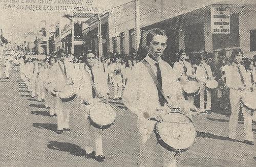 Nesta página vê-se a fanfarra do Colégio Estadual Rui Barbosa, n a Paraná em esquina com a Coronel Figueiredo onde ficava a agência do Banco do Commércio e Indústria de São Paulo.
