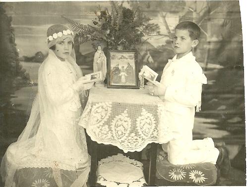 A foto é do início dos anos 40 e registrou o dia da 1ª Comunhão das duas crianças. O local da foto foi no atelier de Eurico Krois, que ficava na Rua Paraná onde ele atuou até o final da década de 40 quando faleceu.