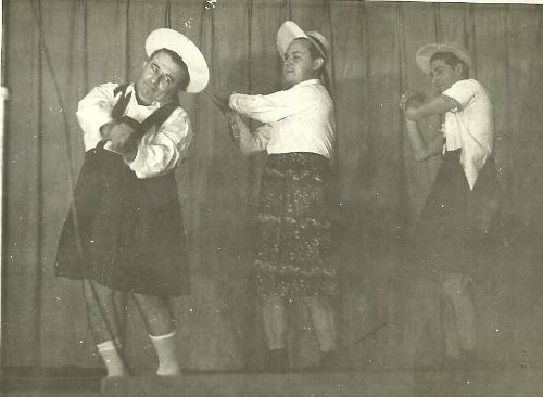 Nesta imagem, de 1968, Jofre, trajando uniforme escolar, participa de uma peça produzida pelo CAT tendo ao seu lado os catianos Estácio Marques Freire e Oscar de Oliveira.